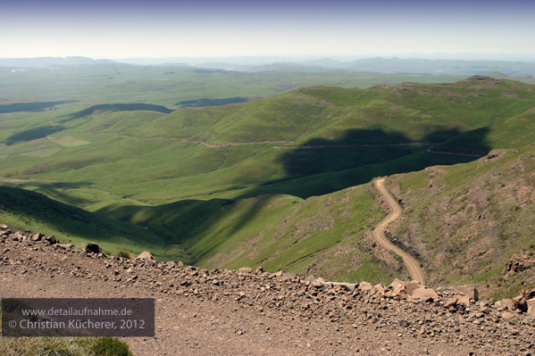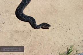 Nachmittags fahren wir noch kurz zum Aussichtspunkt der „Map of Africa“. Der Name stammt daher, dass man von hier aus gesehen den Eindruck hat, die Konturen des Kontinents Afrika zu sehen. Das kommt durch die Windungen des Kaaimans Rivers, die ein stark bewaldetes Gebiet mit entsprechenden Schluchten durchziehen. Ich kenne den Ort, weil ich vor 5 Jahren zum Gleitschirmfliegen hier war und will ihn deshalb Christian zeigen. Während ich den Fliegern beim Soaren zuschaue macht Christian ein paar Fotos – und eine Begegnung mit einer Bergotter. Er ist ihr wohl versehentlich zu nahe gekommen und sie faucht ihn erst mal an, bevor sie sich zurückzieht. Ich bin etwas geschockt, denn als wir das letzte Mal hier waren, sind wir in Badelatschen hier über den Startplatz gelaufen… Glück gehabt!