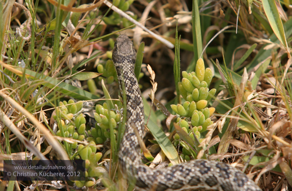 Als ich da sitze kommt auf einmal eine kleine hübsche Schlange angekrochen. Sie ist schon recht nah, als ich sie bemerke. Christian ist weiter weg, springt auf und bringt sich in Sicherheit. Aber bei mir ist sie eigentlich schon auf dem Schuh, also halte ich es für das Beste, mich einfach nicht zu bewegen. Schließlich passe ich mit meiner Größe definitiv nicht in ihr Beuteschema. Ich mag ja Schlangen und sie sieht sehr schön aus. Aber ob sie giftig ist, weiß ich natürlich nicht. Als sie dann mein Bein nach oben kriecht, verliere ich doch die Nerven und springe auf. Zum Glück ist das Tier wohl deutlich ängstlicher als ich und macht sich schleunigst aus dem Staub. Klar, wenn sich der Stein, auf dem du rumkriechst, plötzlich in Bewegung setzt.