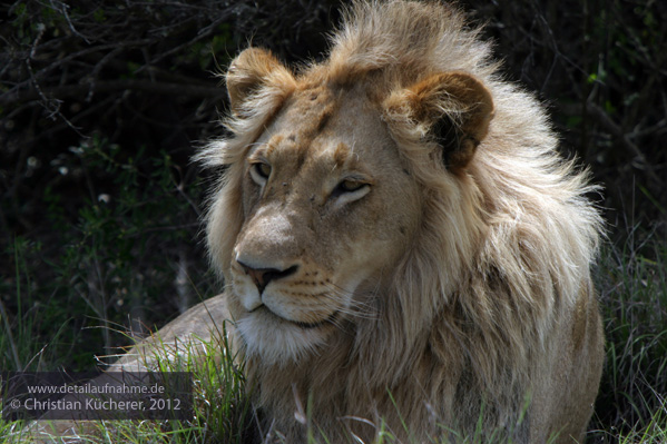 Aber dann nimmt der Guide die Fährte von Löwen auf und verfolgt sie. Schließlich findet er das Paar gut versteckt im Gebüsch.